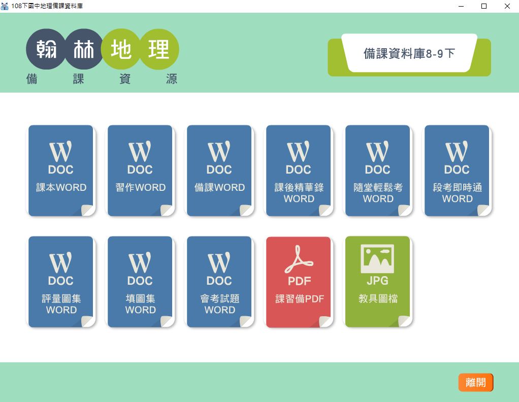 108學年下學期 國中 翰林版 地理備課資料庫 2-3年級(含課本、卷類資源、備課用書、習作含解答、教學輔助資源)教學光碟DVD版