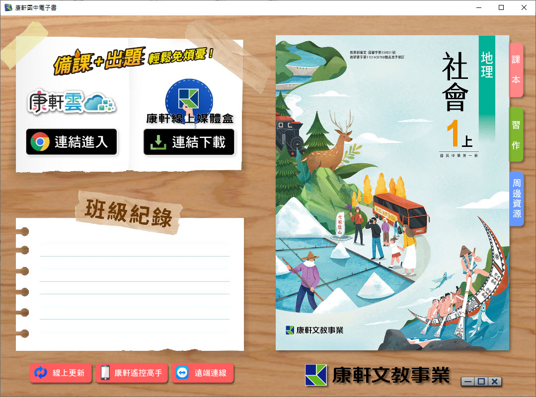 112學年上學期 國中 康軒版 地理電子書 1年級(含課本、習作含解答、教學資源)教學光碟