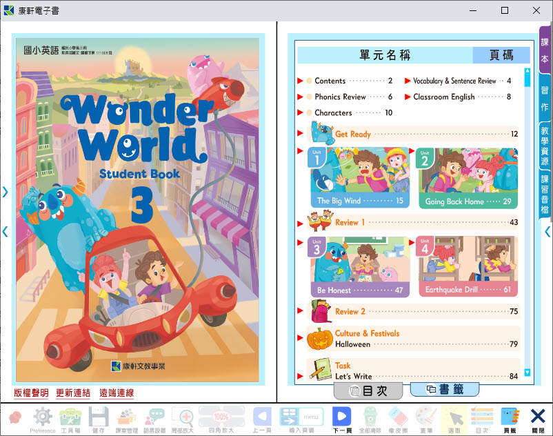 112學年上學期 國小 康軒版 英語電子書 Wonder World 第3冊(含課本、習作含解答) 教學光碟