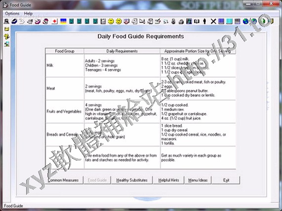 program. A conversion table quickly shows common cooking